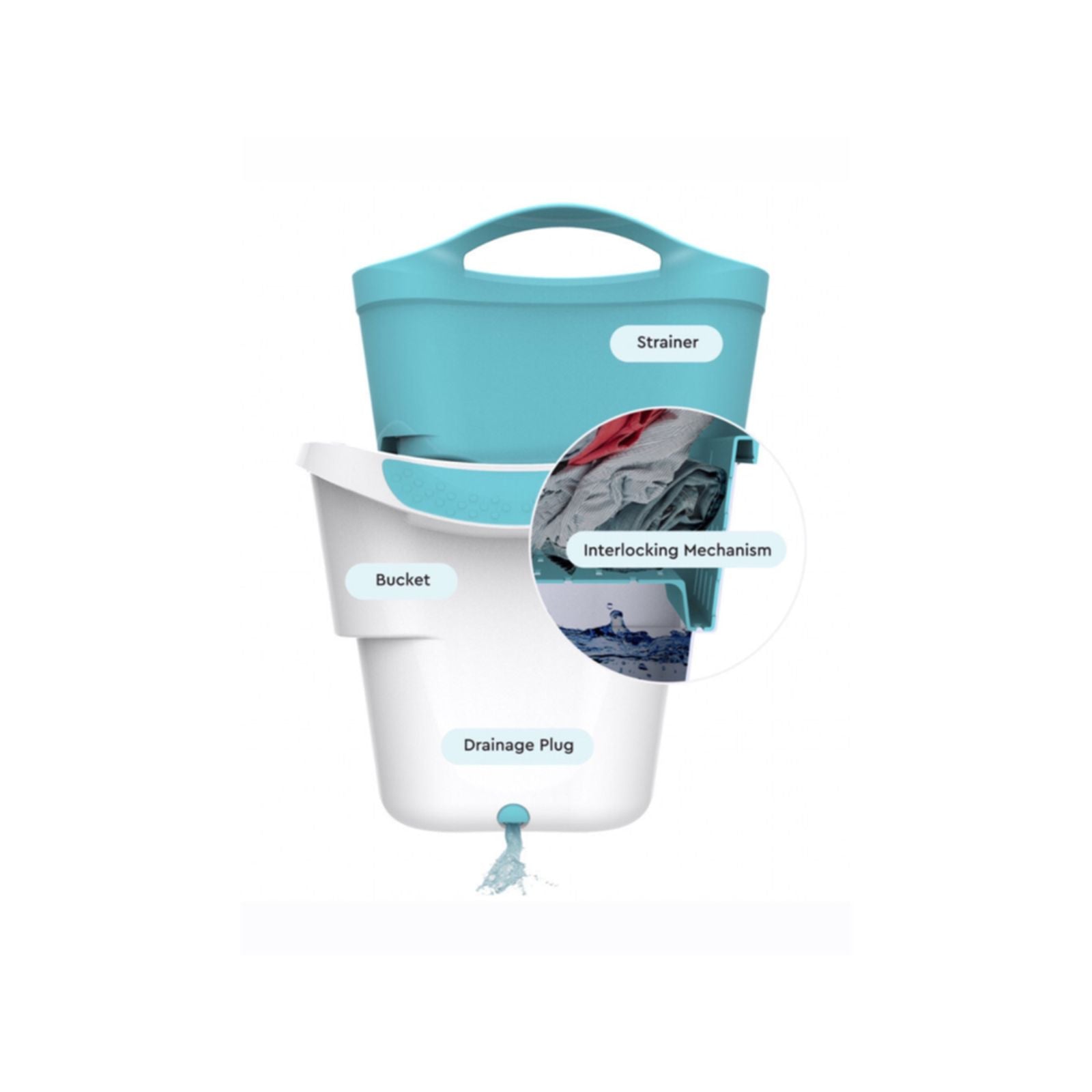 Strain - Easily pull the strainer from the bucket, click into place and separate the soaked items, leaving the dirty water behind.